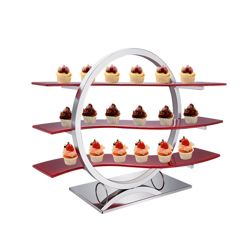 产品名称:冷餐会外宴不锈钢圆形茶歇架S形玻璃组合层架