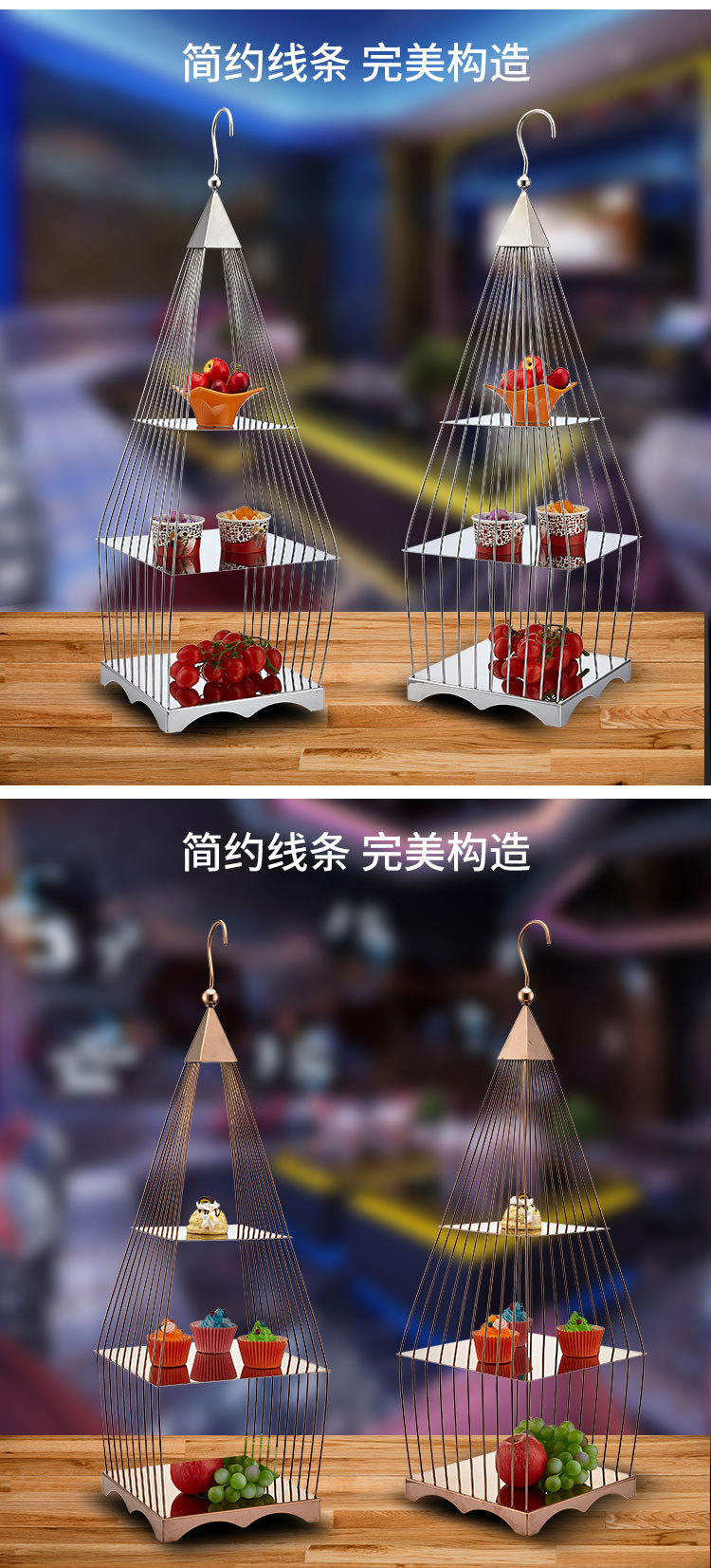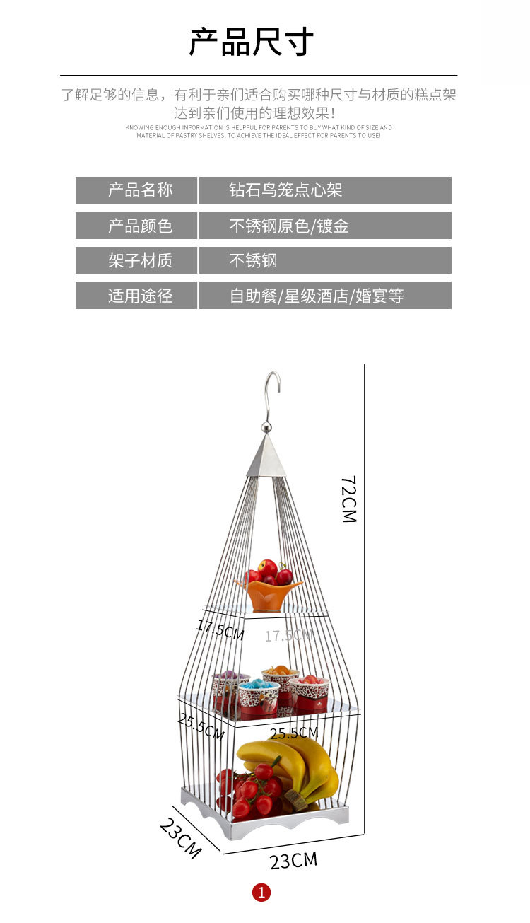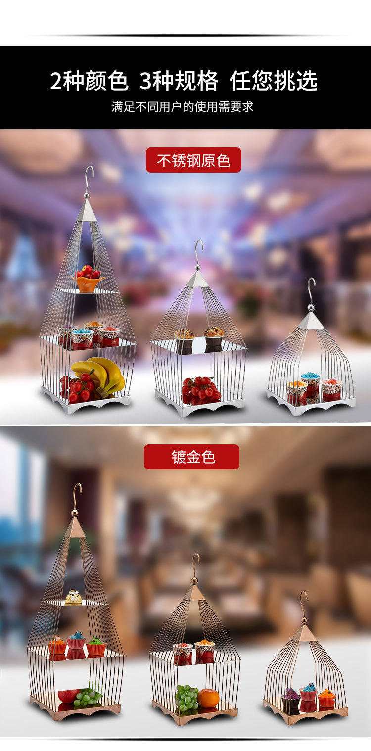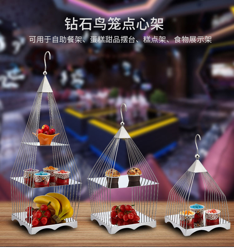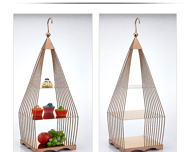 » 创意方形三层鸟笼点心架